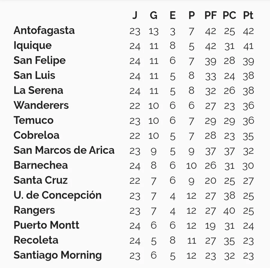 Los dirigidos por Miguel Ponce se mantiene como escolta de Deportes Antofagasta en la parte alta de la tabla. Mientras que Santiago Morning cae hasta el último lugar con 22 unidades.
