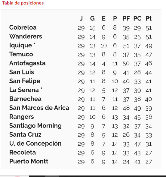 Iquique suma 49 puntos, y en la última fecha del Ascenso Betsson se medirá frente a Santiago Wanderers, uno de los punteros. En tanto, Deportes Santa Cruz se queda con 33 puntos en el puesto 13.