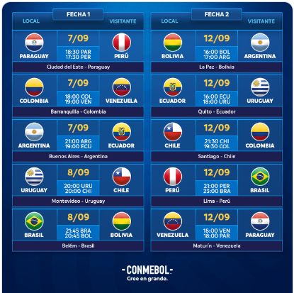 Luego, el 12 de septiembre, recibirá a las 21:30 horas a su similar de Colombia en la segunda fecha.